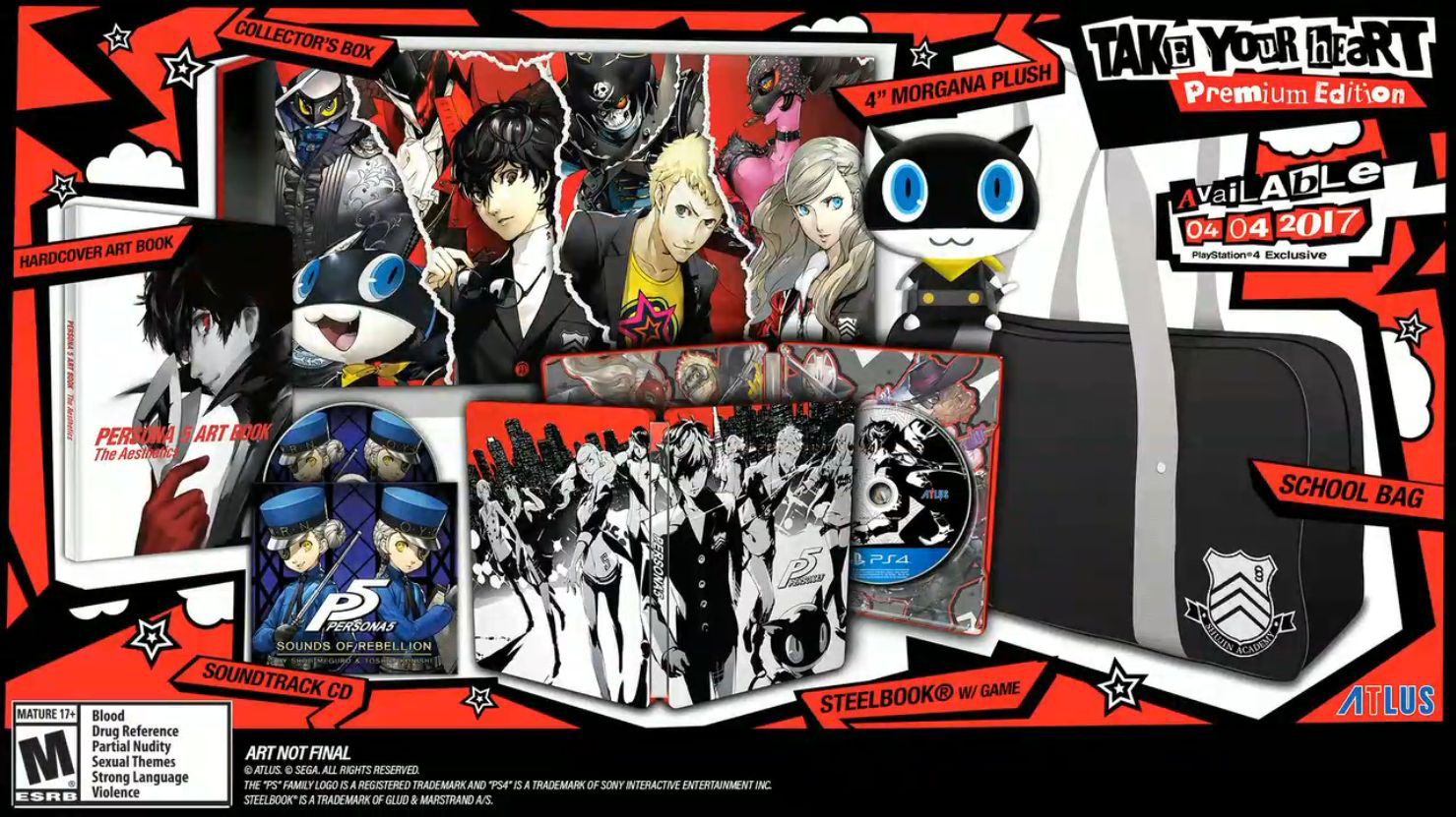 Эксклюзивно для версии игры PlayStation 4, Atlus выпускает Persona 5 в специальном издании SteelBook Launch. Ограниченное издание, которое полностью повторяет SteelBook из «Take Your Heart» с главными героями Persona 5.