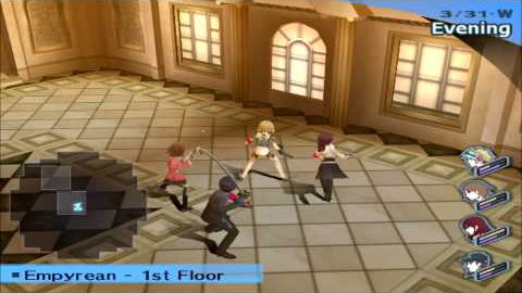 Empyrean is a location in Persona 3 FES. It is the seventh door in the Abyss of Time. On the first 9 floors, Empyrean resembles a fancy and elegant building, with a light palette of colors. The next 10 floors have blue walls and metallic floors, and the last 7 floors have the same design that the first ones have. On the 27th floor, there is a door into Aigis' past.