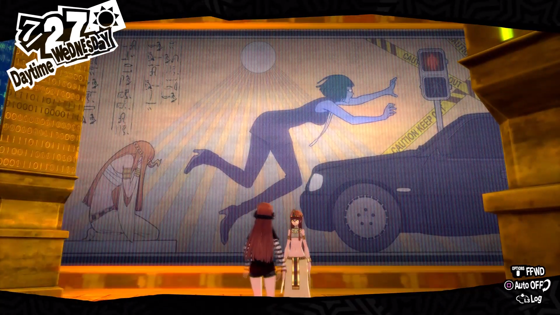 As she and Makoto scream, Sojiro appears, where he finally comes clean about his relation with Futaba. Like in the game, the Thieves agree to steal Futaba's heart in order to stop the group Medjed. While in her palace, it is shown that Futaba's mental state partially transfers over to Shadow Futaba, showing the shadow self in agony as the voices of Futaba's relatives in the tomb.