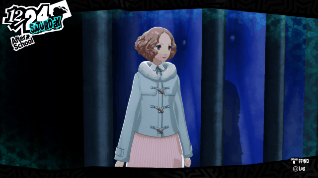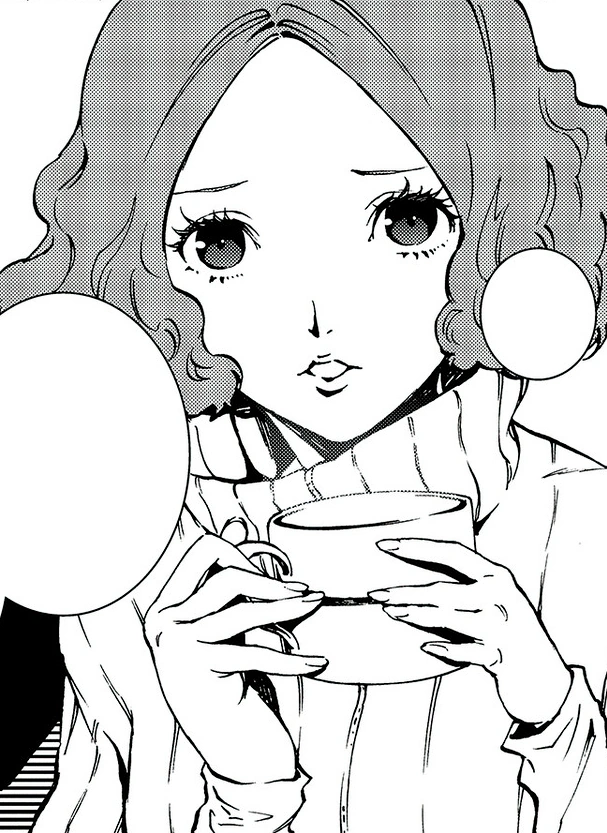 After taking a few days off from school in order to mourn her father and deal with company-related business, Haru returns around the time of midterms, and reveals that Sae Niijima investigated the Okumura residence and Shujin Academy, finding a calling card for the principal in the latter location.