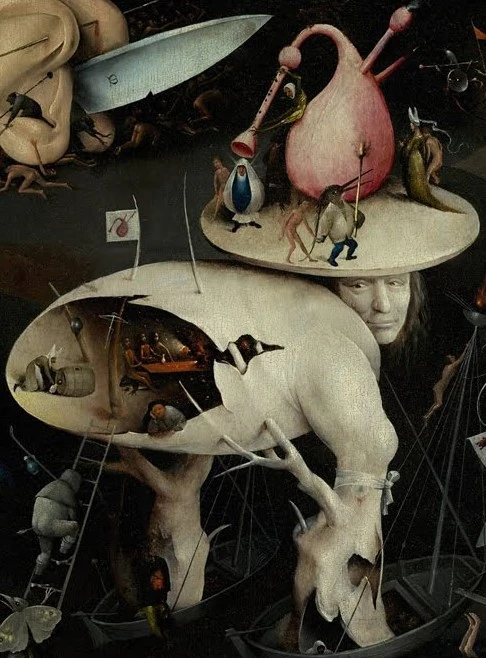 - Homo Avades resembles the "Tree-man," the focal point from the right panel of The Garden of Earthly Delights. Additional changes are added to the monster's design, such as half of its face peeled off and frog soldiers living inside the egg-shaped torso.