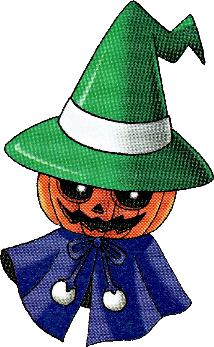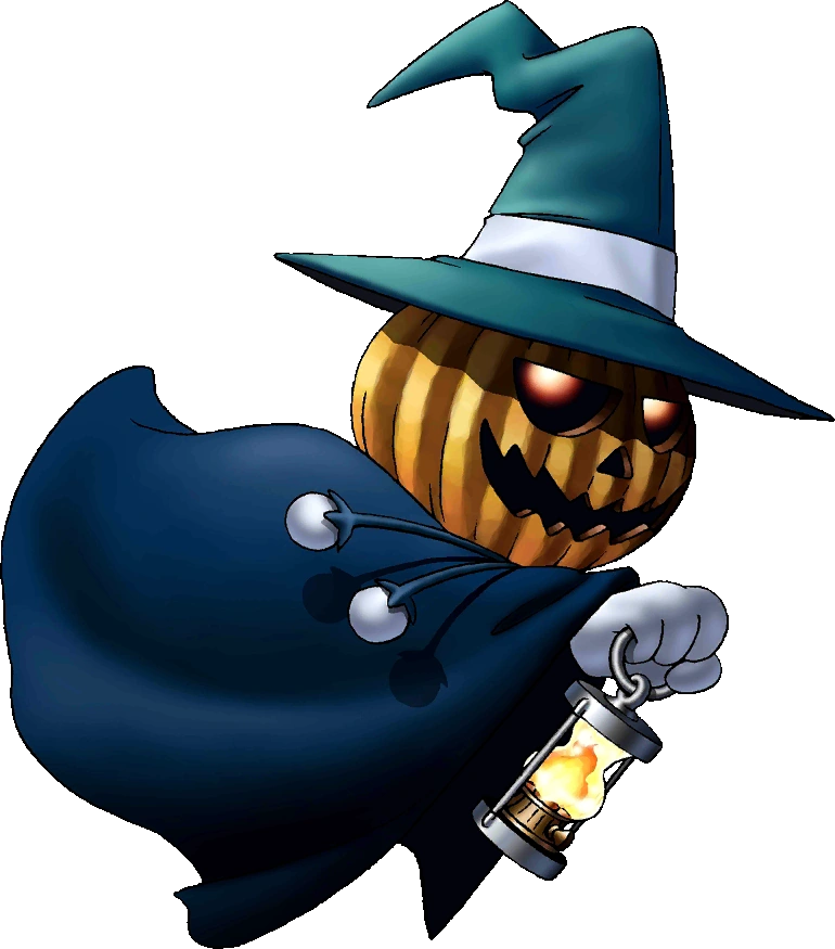 "Imps of fire that appear in English legends. Jack-o'-Lantern is a soul who lived a decadent life and was refused entry into the afterlife. Taking pity on him, a demon placed a small bit of hellfire in a lantern made from a turnip to provide light for him as he wanders through the darkness. In the world of the living, he sometimes serves as a guide for travelers. Jack-o'-Lantern is good friends with Jack Frost. Some Demon Busters claim to have seen them team up as Demon Buster-busting duo Lantern Frost. Today, Jack-o'-Lantern is known as the pumpkin ghost of Halloween. It is believed that this change from turnip to pumpkin came about when the custom of Halloween first came to the United States, because Americans found that pumpkins were brighter and easier to carve than turnips."