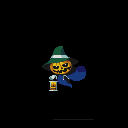 "Flame-demon with a pumpkin head. Lures enemies into a bottomless swamp."