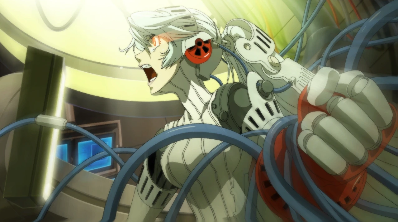 13 years later, Labrys would be rediscovered by the Kirijo Group under Mitsuru Kirijo, though after receiving Labrys' "container" from Yakushima, the plane Mitsuru was on was hijacked and Labrys was stolen and taken to Inaba, where she was thrown into the TV. During this time, Labrys dreams of the ill girl she and #024 wanted to meet, and from her gets the idea of becoming a student council president. A voice appears in Labrys' head and shows her an image of Yasogami High School, offering her the chance to go to school and be the student council president. Labrys is brainwashed by the malevolent entity into thinking that she is the human student council president and that the school she is in is the real Yasogami High School.