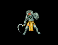 "Origin: Nepal. A man-eating demon from Newar folklore. It usually lives in the mountains, but periodically runs through villages. As it does so, it kidnaps anyone who happens to be outside at the time."