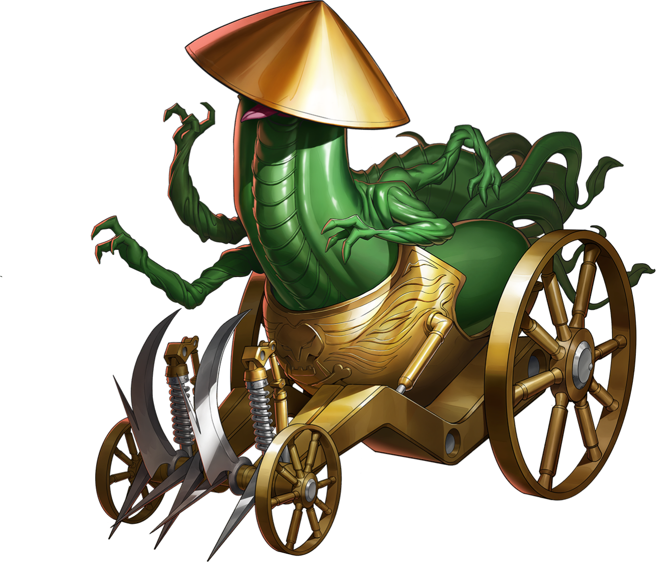 He also holds the distinction of having the only multi-target severe damage Fire elemental spell, "Maralagidyne." Fusing Mara with a Nihil weapon grants the strongest fist-type weapon, Evil Gloves, which is another pun on his design.