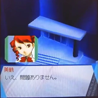 - ↑ Mitsuru: "It's been 10 days since you first entered Tartarus, and you haven't done a thing. Who do you think you are? At first, I thought you had a plan, but now I can see that you've just been slacking off. If you recall, I told you that you would have a difficult time later if you don't adequately train. Was it a mistake to appoint you the leader? We are going to Tartarus tonight. Understood? Don't disappoint me."