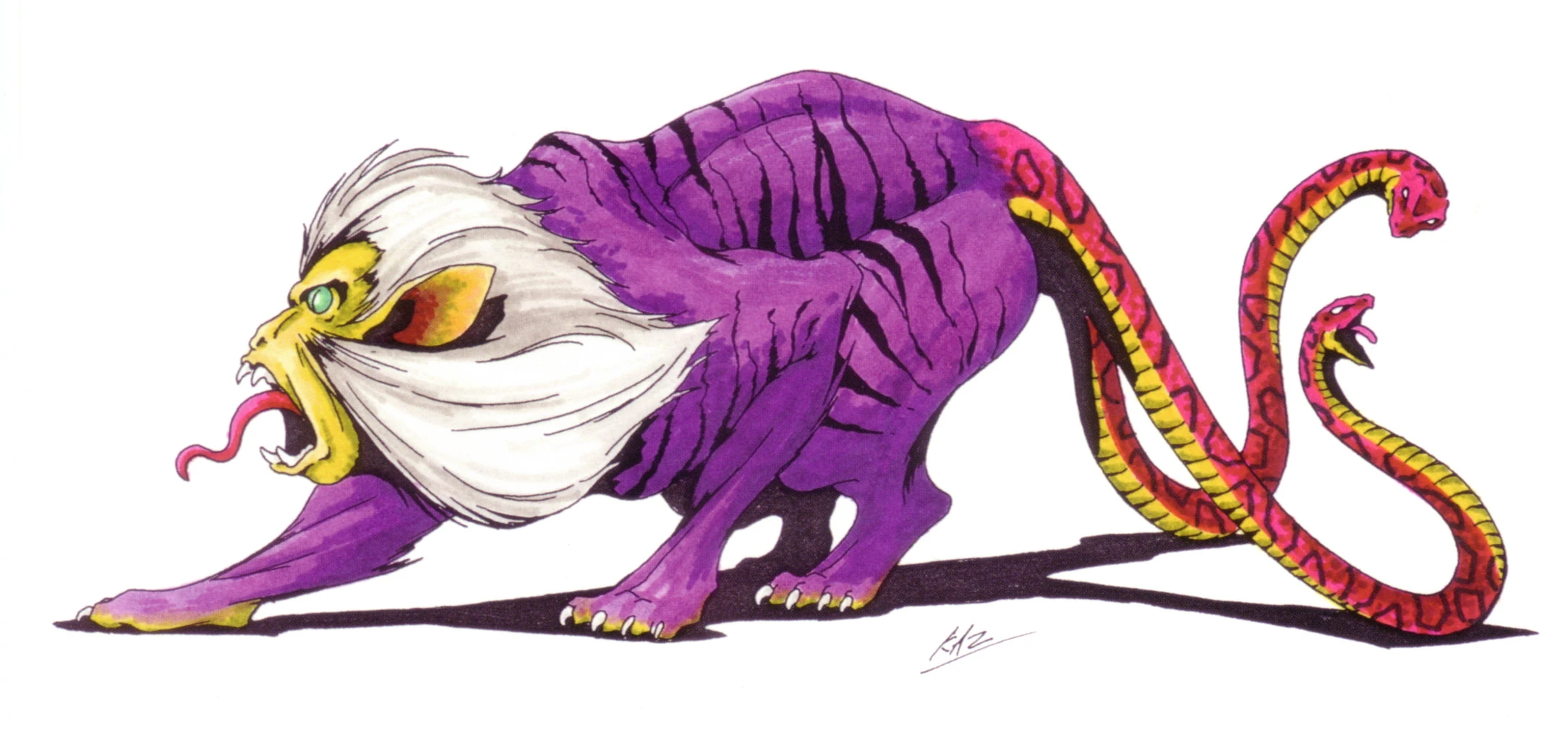 "A legendary monster in Japanese mythology. Nue has the head of a monkey, the arms and legs of a tiger, body of a tanuki, and a snake for a tail.