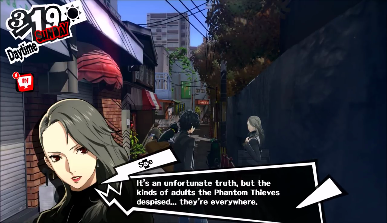 Furthermore, Shujin Academy's Principal's death only confirmed Sae's suspicions that the mental shutdown and psychotic breakdown incidents are the work of the Phantom Thieves, fueling her desire to take them down. However, she's been misguided, as the Phantom Thieves are in fact not responsible for his death. She's also willing to go as far as ignore police protocol to catch the Phantom Thieves, with Akechi warning her that her actions would be "no better" than those of the thieves.