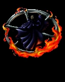 The image is recolored here providing more definition in the flames and allowing the Thrones' bare human feet to be seen under the robe, the eyes are also toned down to only seem like alight pupils. The wheel is now a weathered gun metal color instead of the previous shinning design.