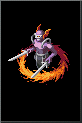 Throne can appear in Qliphoth World under the name "Fire Assassin." Throne has been buffed from 71 to 72, his weakness has been changed from Curse to Nuclear, he can now block both Fire and Wind skills, and he repels Bless attacks. All of Throne's skills have been replaced except for Invigorate 3 and Makougaon. When itemized through Electric Chair execution, Throne will now yield a Spiral Divine Ringaccessory, which allows the wearer to use Makougaon. During a fusion alarm, Throne will yield the Judgement Cross accessory instead, which allows the wearer to use Divine Judgement.