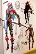 When in Carnage Form, his hair turns dark navy and grows out to halfway of his back, and he wears a silver armor outfit with bands of gold, dark green and red wrapping around his entire body, and a silver helm to cover part of his face.